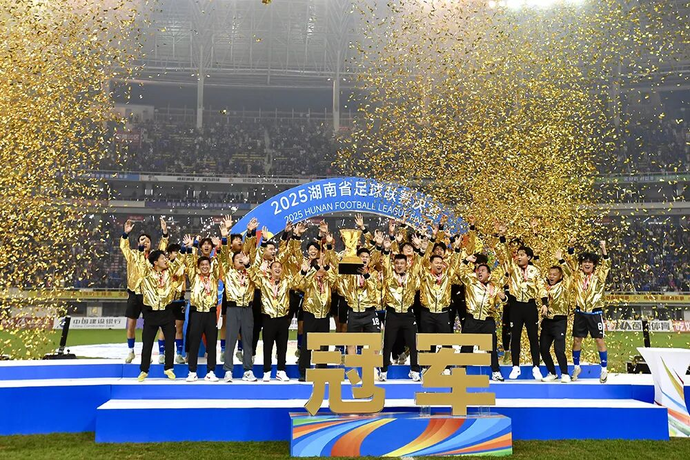 2025年12月27日晚,终场哨响起,永州队登上2025湘超联赛的最高领奖台,观众席上涌动的“永州蓝”与连夜改造的巡游花车,让这座湘南古城沉浸在“过年般”的喜悦中。而之后“夺冠赠车”事件的热议,让永州队再次成为焦点。