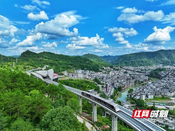 湖南轨道集团在凤凰古镇打造的磁浮观光列车。