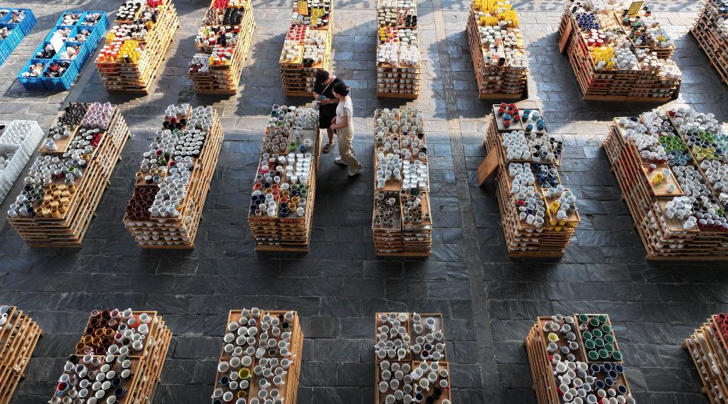 游客在醴陵市一处“低价捡瓷区”挑选瓷器。图片来源:新华社